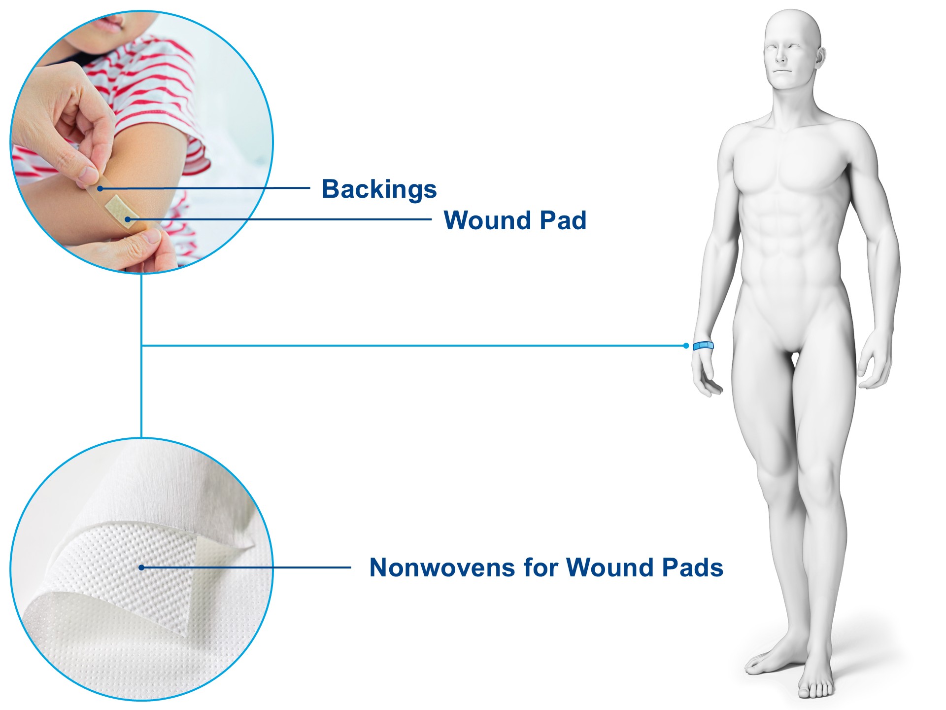 Freudenberg Performance Materials manufactures innovative nonwoven components for traditional wound care. Whether for classic first aid dressings, post-operative wound dressings or compresses– our materials offer the right solution for every customer. We offer nonwovens with different absorption levels and wound contact layers to protect the injured skin. High-performance backing materials serve as coating carriers for adhesives and support secure fixation to the body in the finished wound dressing.